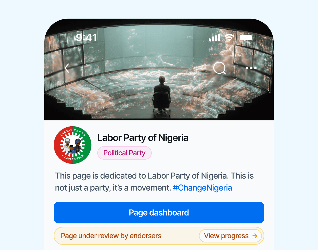 Political parties can create official pages to share policies, publish manifestos, and interact with members. Supporters can follow, comment, and participate in discussions under their banner.