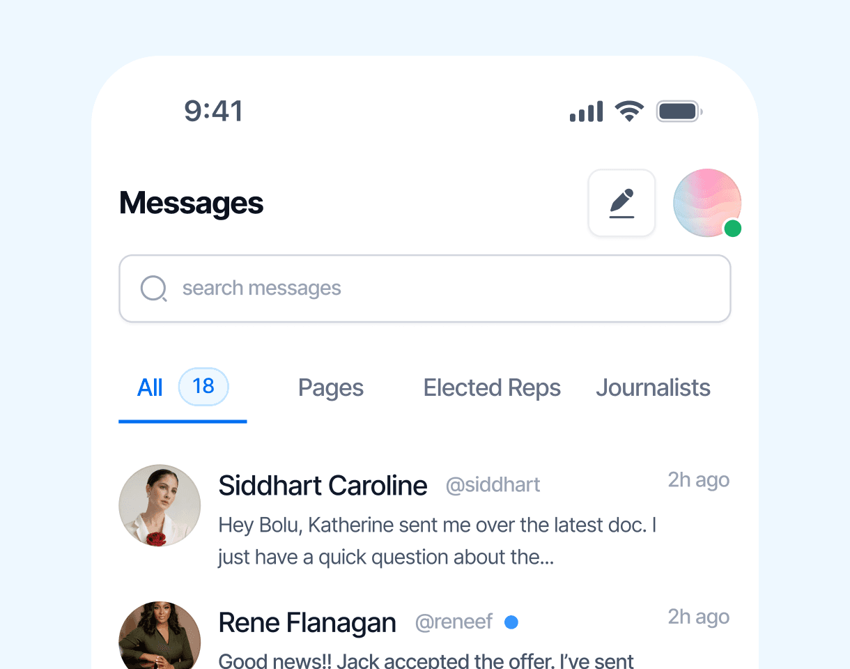 Engage meaningful conversations. Chat privately with friends, engage in civic discussions, or message political figures who choose to open public channels.